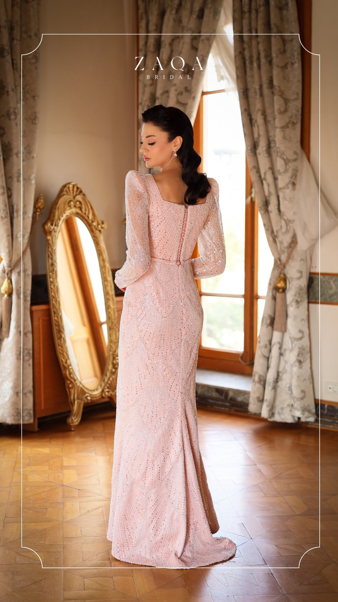 Işıltılı pembe tonlarında zamansız bir zarafet — “Sude” elbisesi, rafine boncuk işlemeleri ve kare yaka detayıyla göz kamaştırıyor. Omuz bölgesindeki zarif süslemeler, modern siluetine zarafet katarken; klasik güzellik ile çağdaş çekiciliği bir araya getiriyor. Doğal bir şıklık arayan ve ışıldamaktan vazgeçmeyen kadınlar için tasarlandı.